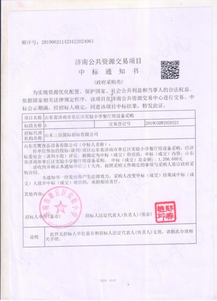 山東省濟(jì)南市章丘區(qū)實(shí)驗(yàn)小學(xué)餐廳用設(shè)備采購