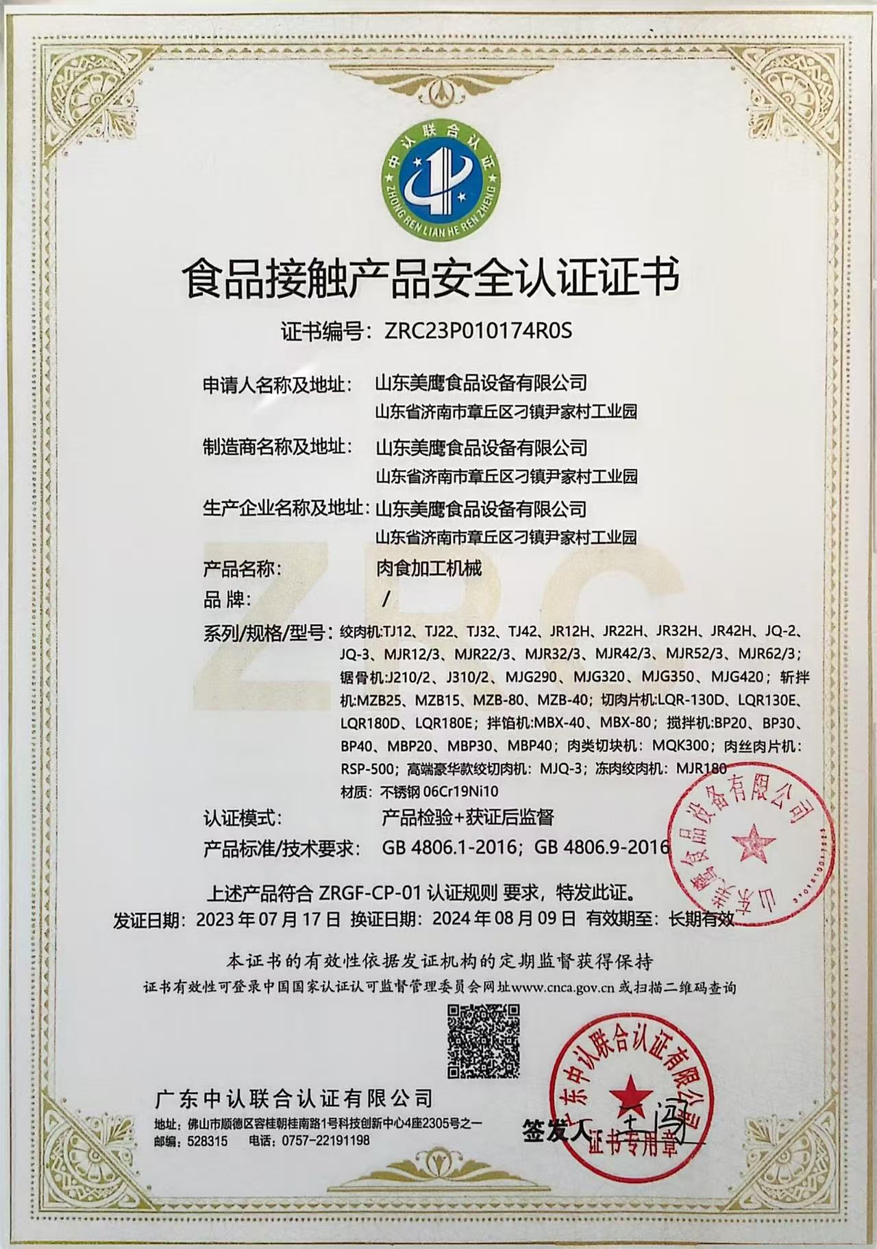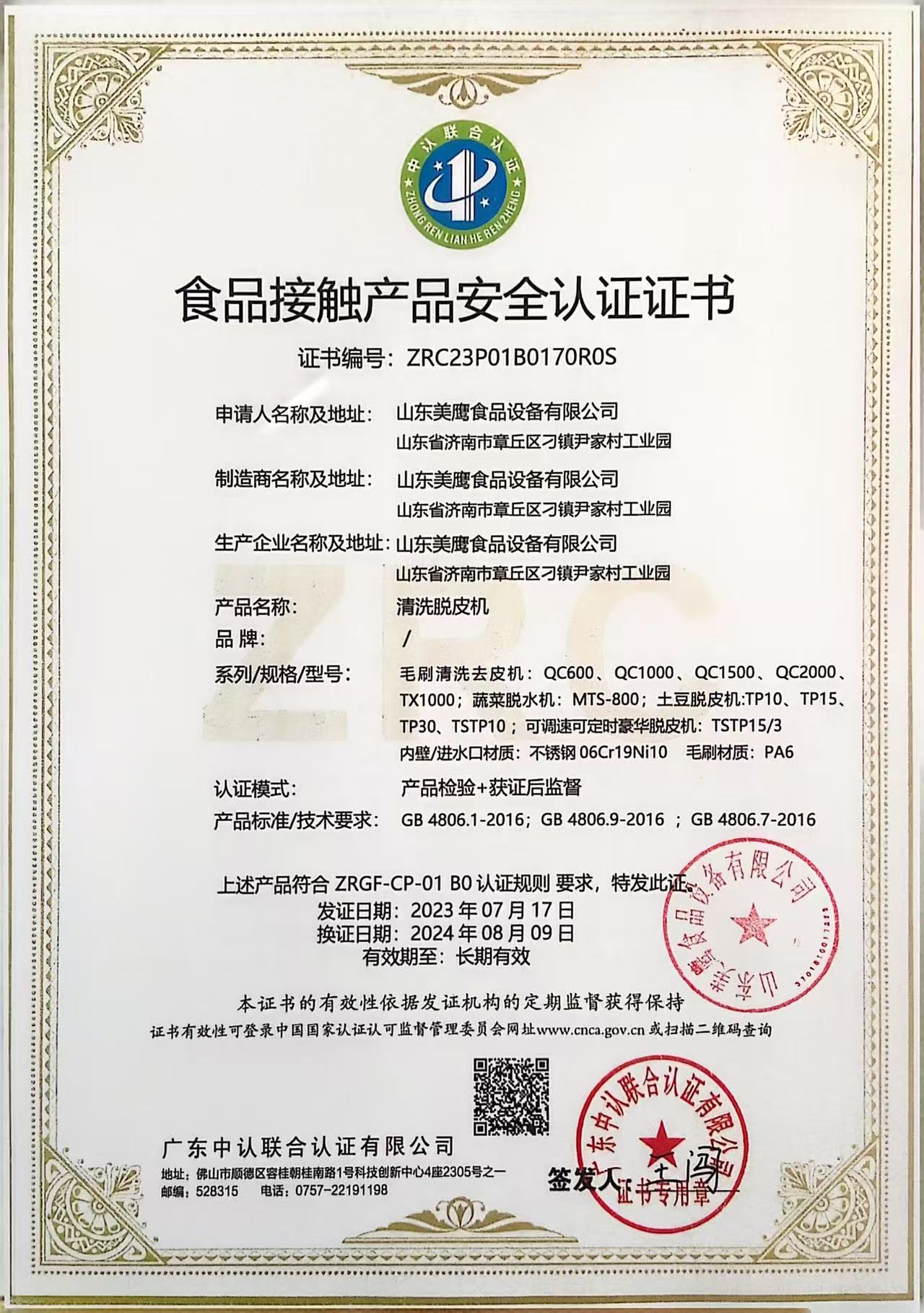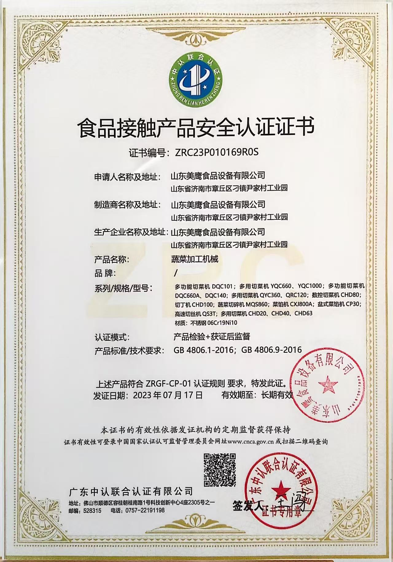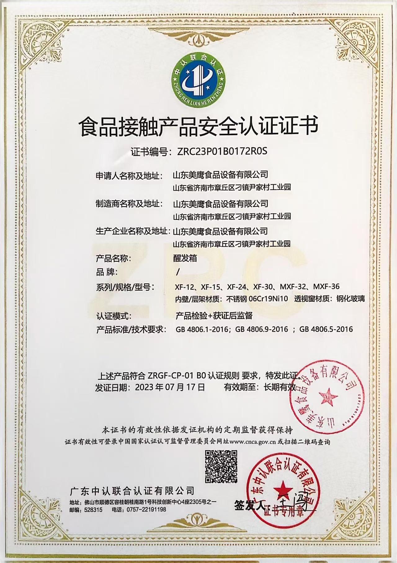食品接觸產(chǎn)品安全認(rèn)證證書