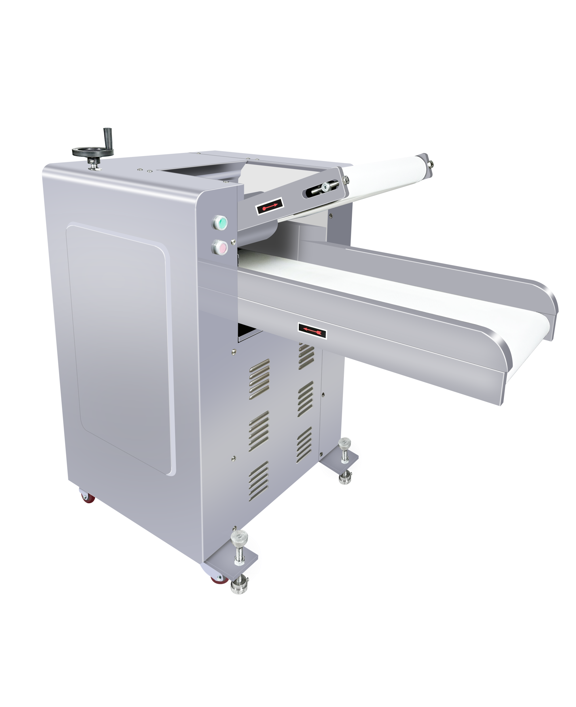 2.上翻壓面,輸送帶進(jìn)面出面,操作安全、工作效率高