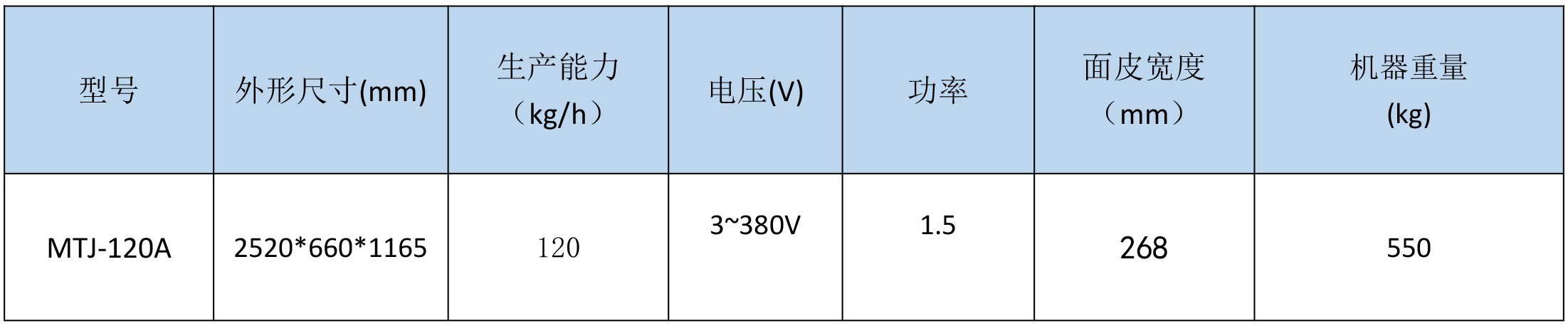 MTJ-120A面條機(jī)主要由機(jī)架、電動(dòng)機(jī)、減速機(jī)、齒輪和鏈輪傳動(dòng)機(jī)構(gòu)、進(jìn)料斗、軋輥、上面架以及電器控制部分等組成。