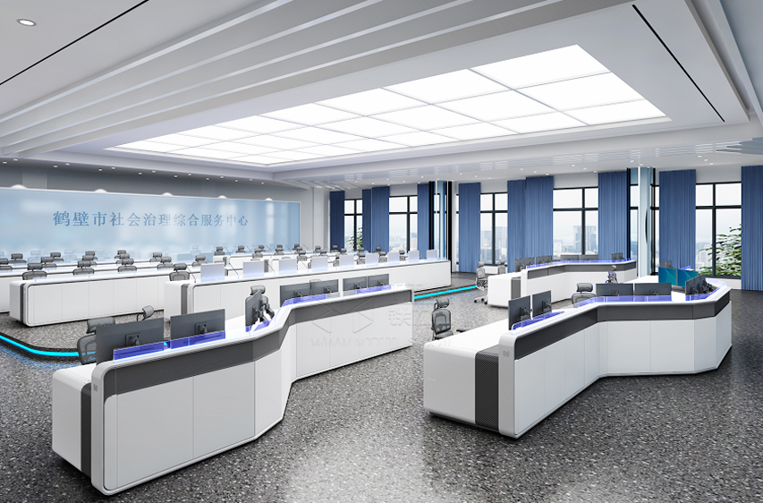 綜治中心是新時代基層社會治理的組織模式和運轉平臺,鐵力山在為鶴壁市綜治中進行設計規(guī)劃時,結合業(yè)務使用需求,通過控制臺+坐席一體化解決方案的整體部署,幫助用戶在項目設計階段,合理進行席位規(guī)劃、顯示器數量規(guī)劃,供電,安裝,走線,通風及音視頻系統(tǒng)整合、信號調用控制等功能性規(guī)劃。