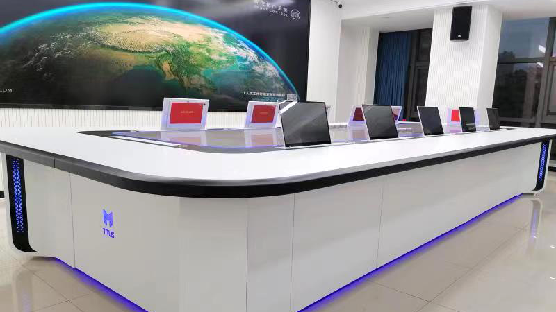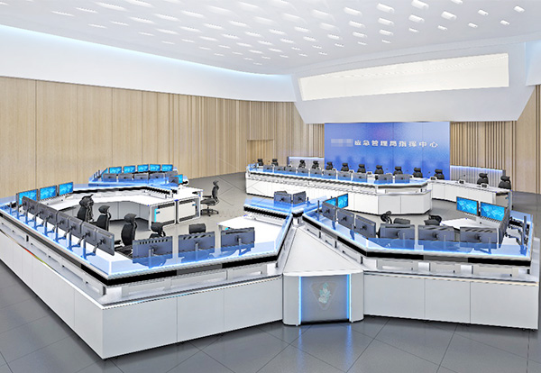 鐵力山控制臺、坐席形成一體化解決方案,在方案設(shè)計前期將顯示器數(shù)量型號、席位規(guī)劃、音視頻系統(tǒng)進(jìn)行綜合考慮,整體設(shè)計。