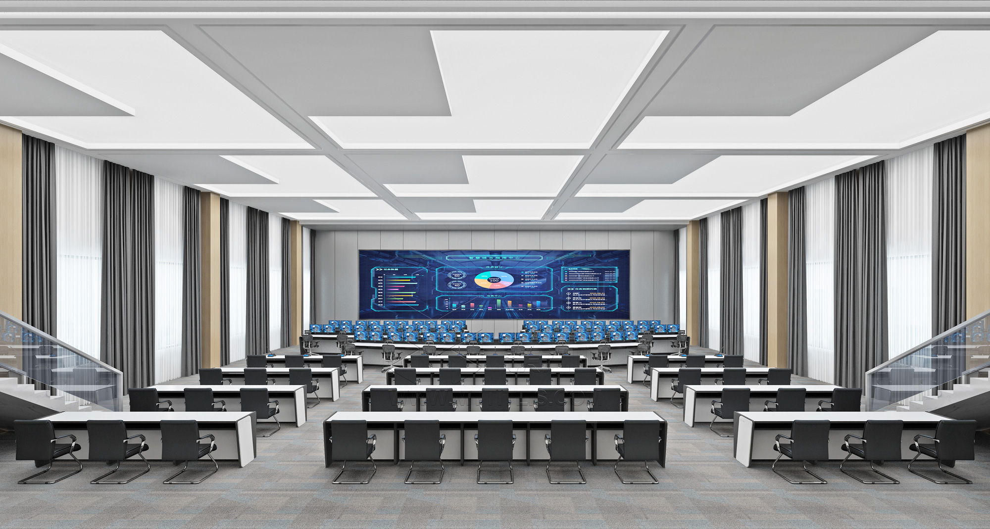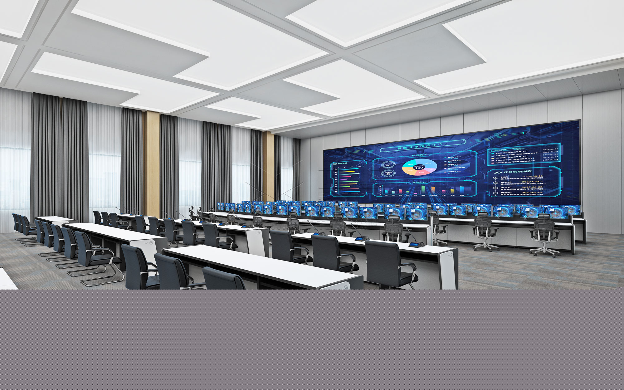 在順平縣智慧城市項目中,應用了多款鐵力山家族化語言設計的智慧控制臺+“星圖”全光分布式坐席解決方案,綜合考慮軟硬件配置打造出一體化解決方案,實現(xiàn)在項目設計階段完成席位規(guī)劃、顯示器數(shù)量規(guī)劃、供電、通風、安裝、走線及音視頻信號調用控制等功能應用設計。