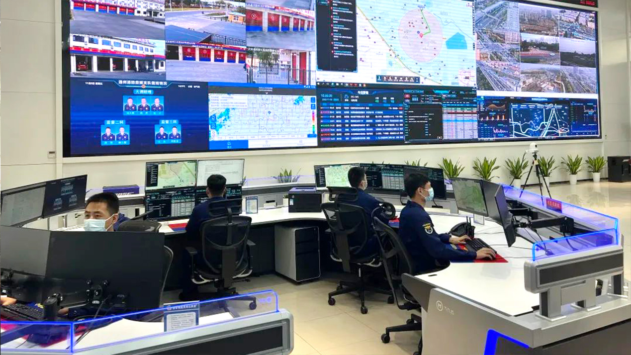 新建成的城市副中心總建筑面積530平方米,將空間劃分為指揮大廳、作戰(zhàn)制圖室、會(huì)商研判室、指揮長(zhǎng)室、辦公室的“一廳四室”。設(shè)置接警調(diào)度、情報(bào)信息、指揮決策、融合值守、舒緩休閑5大功能區(qū)域、21個(gè)值守席位,形成“專區(qū)專用、分區(qū)互通、全區(qū)并融”的立體化架構(gòu)。