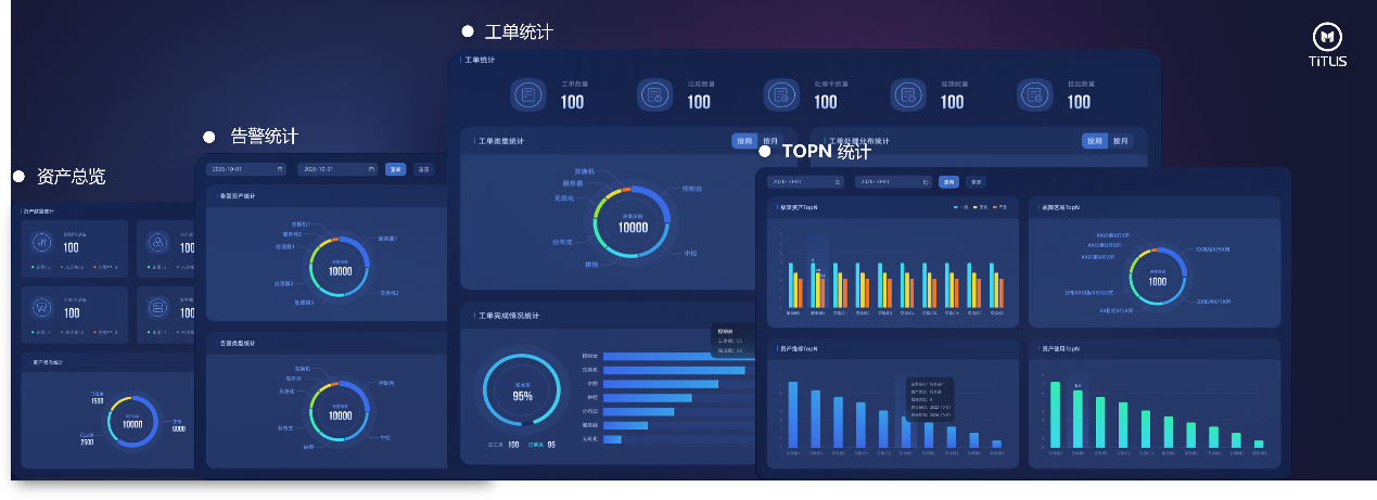 云凌智能運(yùn)維平臺(tái)提供資產(chǎn)、告警、工單等多維度的數(shù)據(jù)統(tǒng)計(jì),使管理層全面了解運(yùn)維工作成效和系統(tǒng)整體運(yùn)行狀況,并通過數(shù)據(jù)分析預(yù)測系統(tǒng)未來的資源需求和業(yè)務(wù)增長趨勢,為系統(tǒng)架構(gòu)優(yōu)化提供方向,使系統(tǒng)更加適應(yīng)不斷變化的業(yè)務(wù)環(huán)境和技術(shù)發(fā)展趨勢。