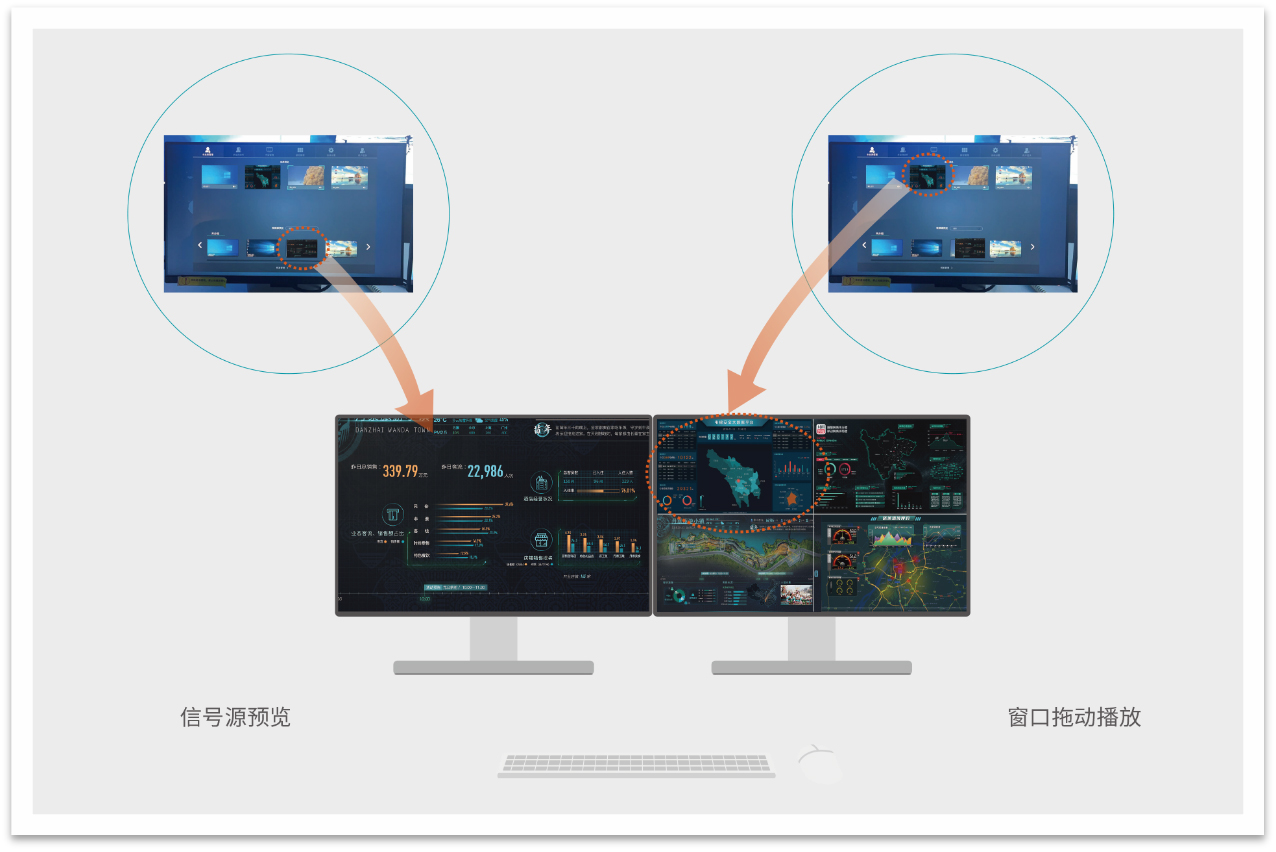 支持信號源可視化顯示,界面可視化預覽,音視頻及系統狀態(tài)清晰可視,支持多路信號源自定義分組調用,為操作人員進行信號源管控提供強大助力,快速選擇想要的數據,對信號上屏與抓取、多畫布、視頻墻的應用更加方便。