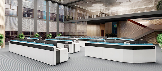新的電力調(diào)度大廳在硬件上選擇了專業(yè)的控制臺,鐵力山智信系列控制臺符合人體工程學和美學的要求,滿足坐站兩用辦公場景,采用模塊化的拼接方式,布局靈活多變,強弱電分離,具備專業(yè)的線纜管理,多媒體信息接口,為信息化升級改造奠定夯實基礎。