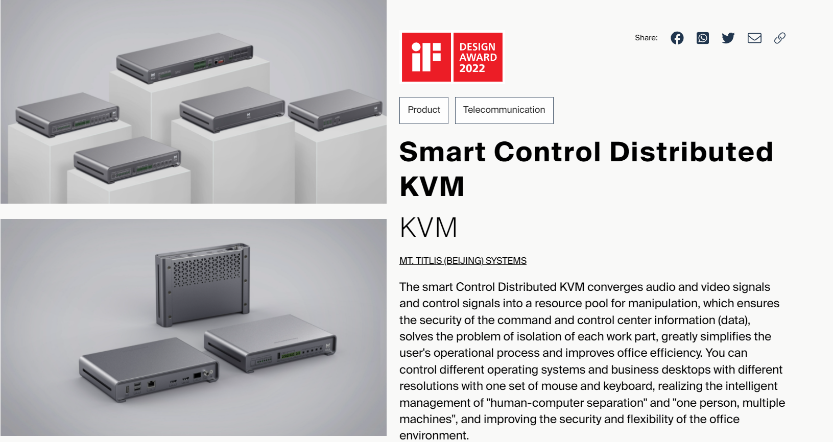 鐵力山獲此殊榮,是國際設(shè)計行業(yè)對鐵力山產(chǎn)品創(chuàng)新研發(fā)、工業(yè)設(shè)計實力的高度認(rèn)可,未來,我們將以德國IF設(shè)計大獎為鞭策,不斷強化產(chǎn)品創(chuàng)新設(shè)計和智慧化融合方案在全行業(yè)的賦能應(yīng)用,為各行業(yè)控制中心提供綜合性、前瞻性、一體化的規(guī)劃設(shè)計,助力各行業(yè)加快信息化發(fā)展。