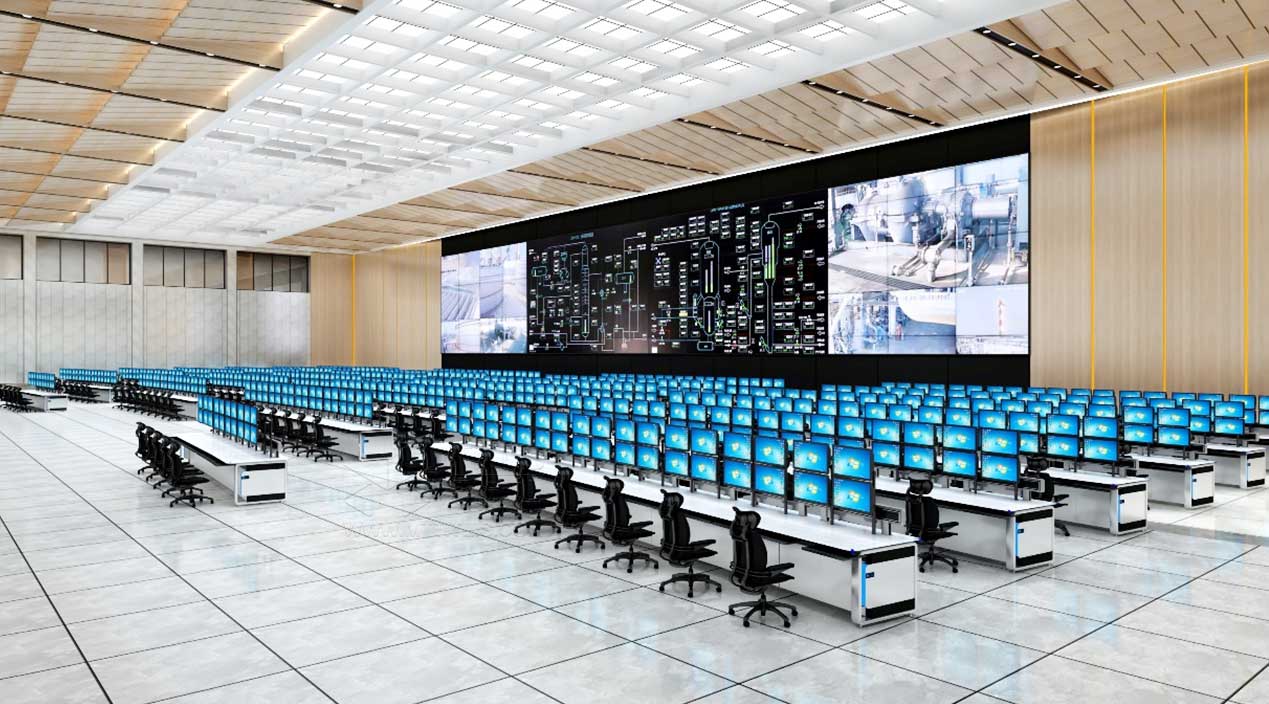在石油石化行業(yè)中,中央控制室是整個廠區(qū)的核心區(qū)域,專業(yè)的控制臺的使用在人機交互、工業(yè)控制、應(yīng)急指揮和安全管理中發(fā)揮著關(guān)鍵作用。在盛虹1600萬噸/年煉化一體化項目中,應(yīng)用鐵力山家族化語言設(shè)計“信實”控制臺進行科學(xué)布局。