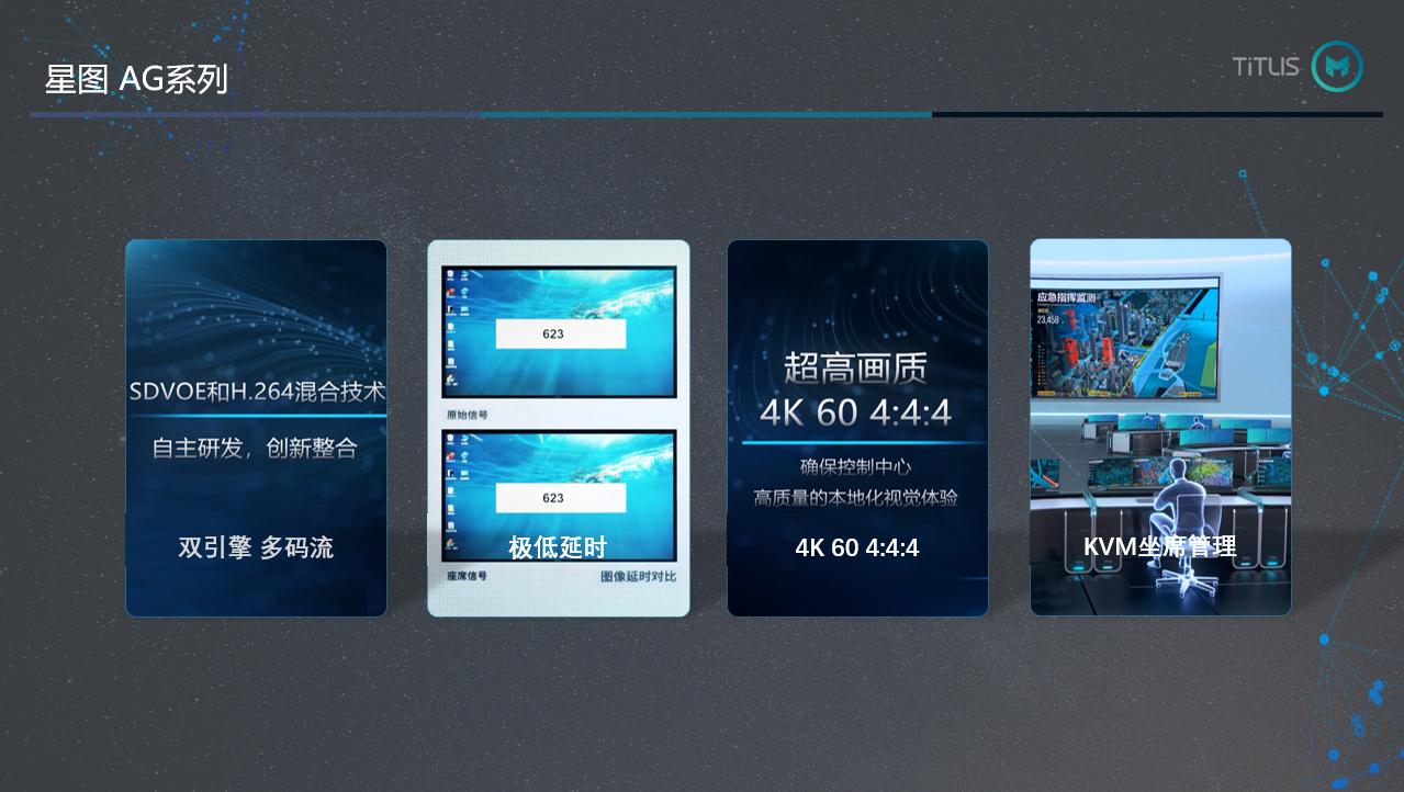 星圖AG系列采用高可靠的分布式傳輸架構(gòu) ,通過無(wú)損編碼與深壓縮結(jié)合的多碼流處理技術(shù), 實(shí)現(xiàn)了域內(nèi)高帶寬下對(duì)4K@60超高清信號(hào)的無(wú)損采集,極低時(shí)延傳輸與高品質(zhì)還原,并滿足域外窄帶傳輸網(wǎng)絡(luò)的音視頻信號(hào)資源分享與遠(yuǎn)程調(diào)度需求。