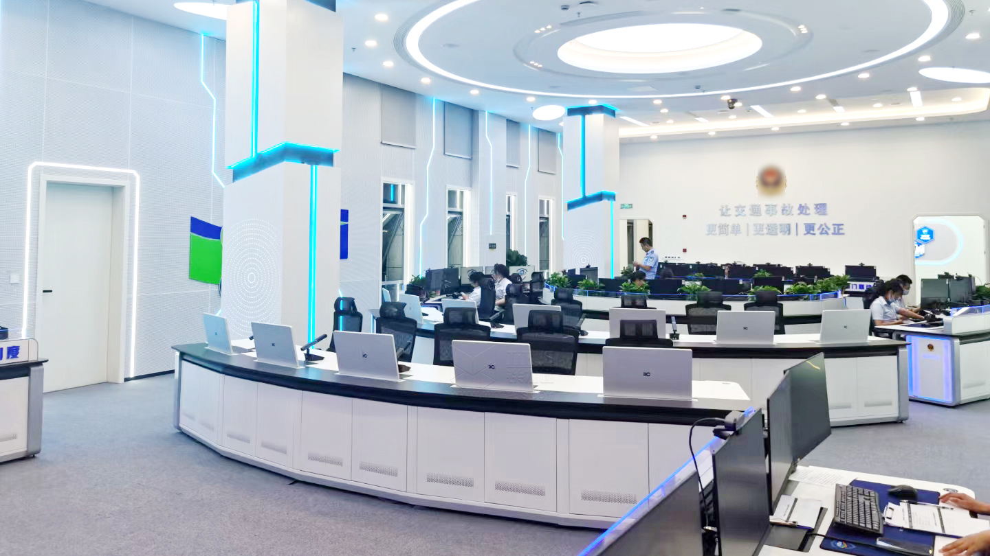 在該市公安道路交通事故處理中心中,以鐵力山智信系列“信實”控制臺為基礎(chǔ)進行科學(xué)擺放,控制臺的智慧化燈帶可形成和交管中心的多種業(yè)務(wù)模式呼應(yīng),嵌入式桌面多媒體信息盒可實現(xiàn)多種定制化線纜集中管理,同時,采用家族化語言設(shè)計的鐵力山會議產(chǎn)品極大的增加了整個空間的聯(lián)動性、會商決策更加智慧高效。